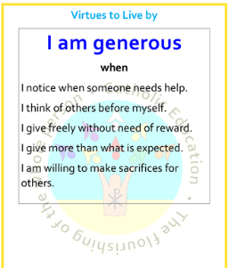 Our current Virtue to Live By is: Generosity